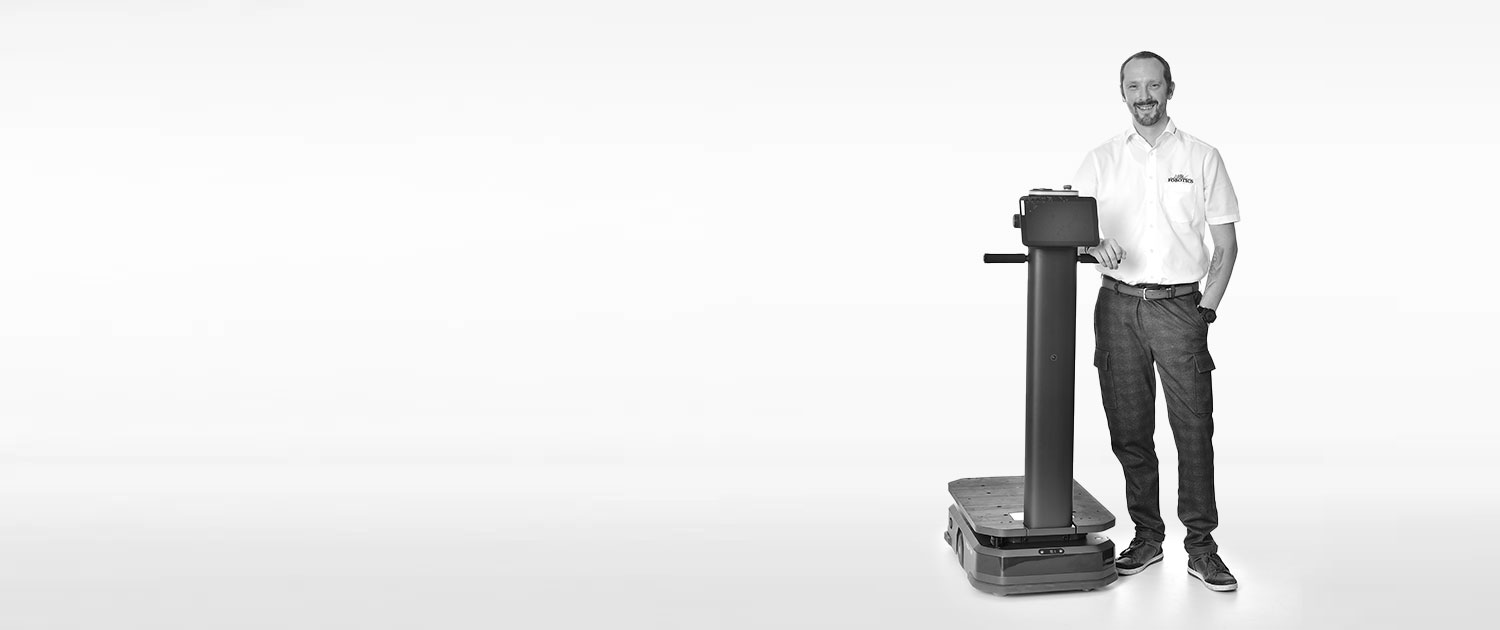 Herr Fiedler berichtet über den Reinigungsroboter PUDU CC1 von Giobotics.