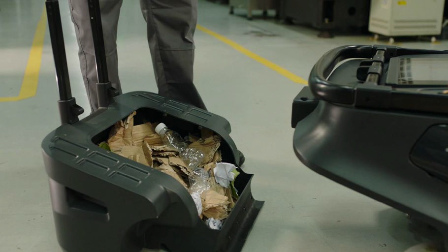 Der Müllbehälter ist mit Schnellverschlüssen ausgestattet, die ein einfaches Entleeren und Reinigen ermöglichen. Dies reduziert die Ausfallzeiten und erleichtert die Handhabung.