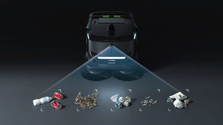 Mit KI-gestützter Müllerkennung sorgt er für gründliche Reinigung auf großen Flächen.