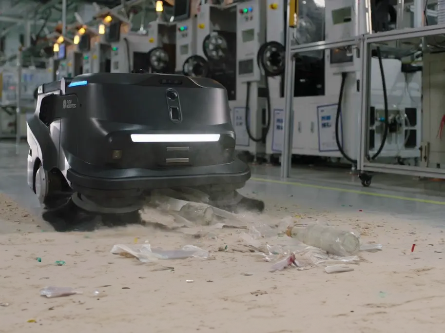 Der KI-gesteuerte Pudu MT1 Kehrroboter revolutioniert die Reinigung in Lagerhallen, Logistikzentren und Industrie.