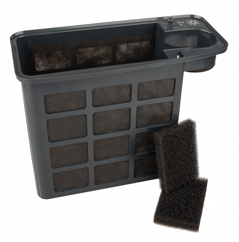 Partikelbehälter und Filter für die Trockenreinigung.